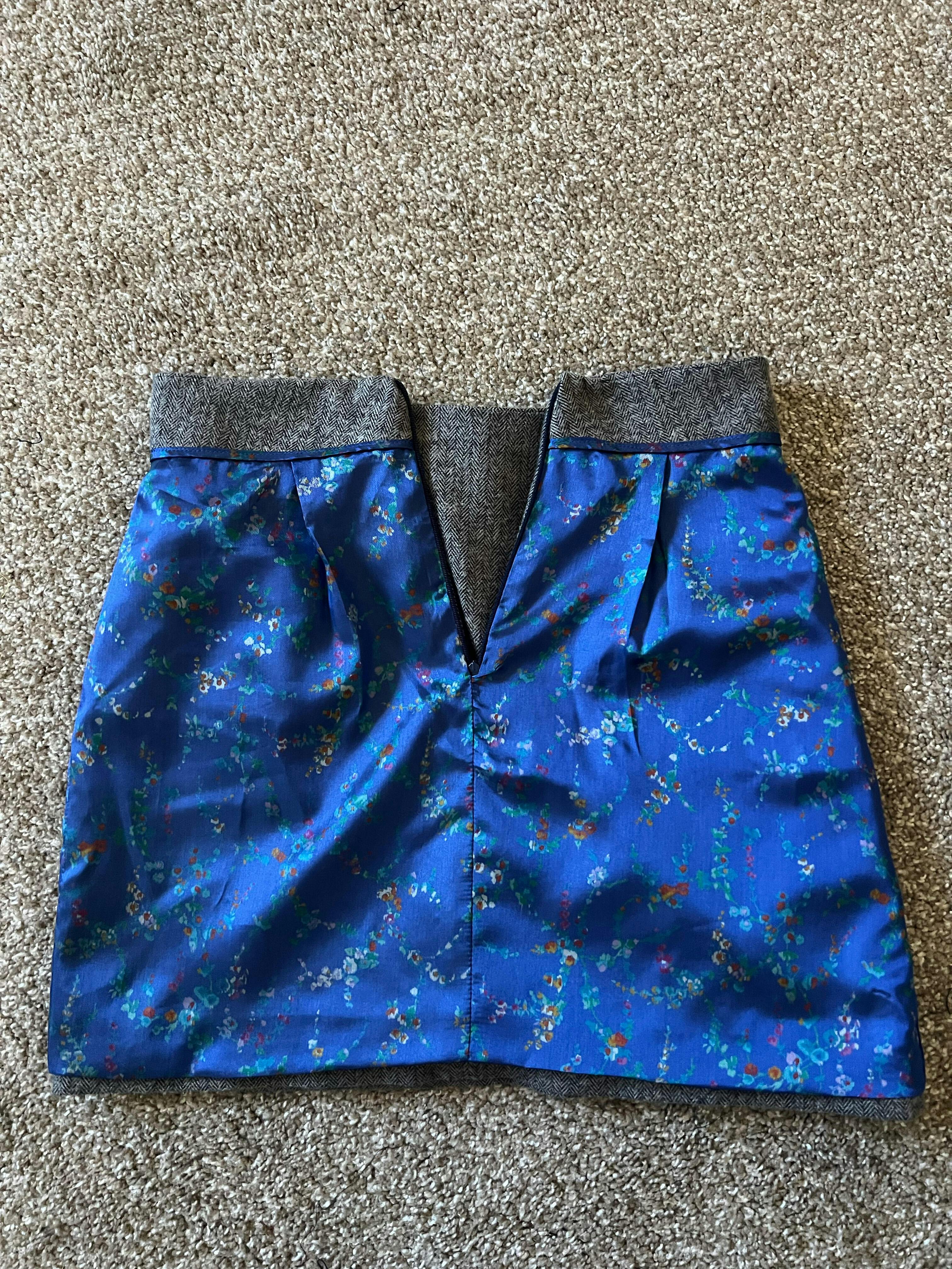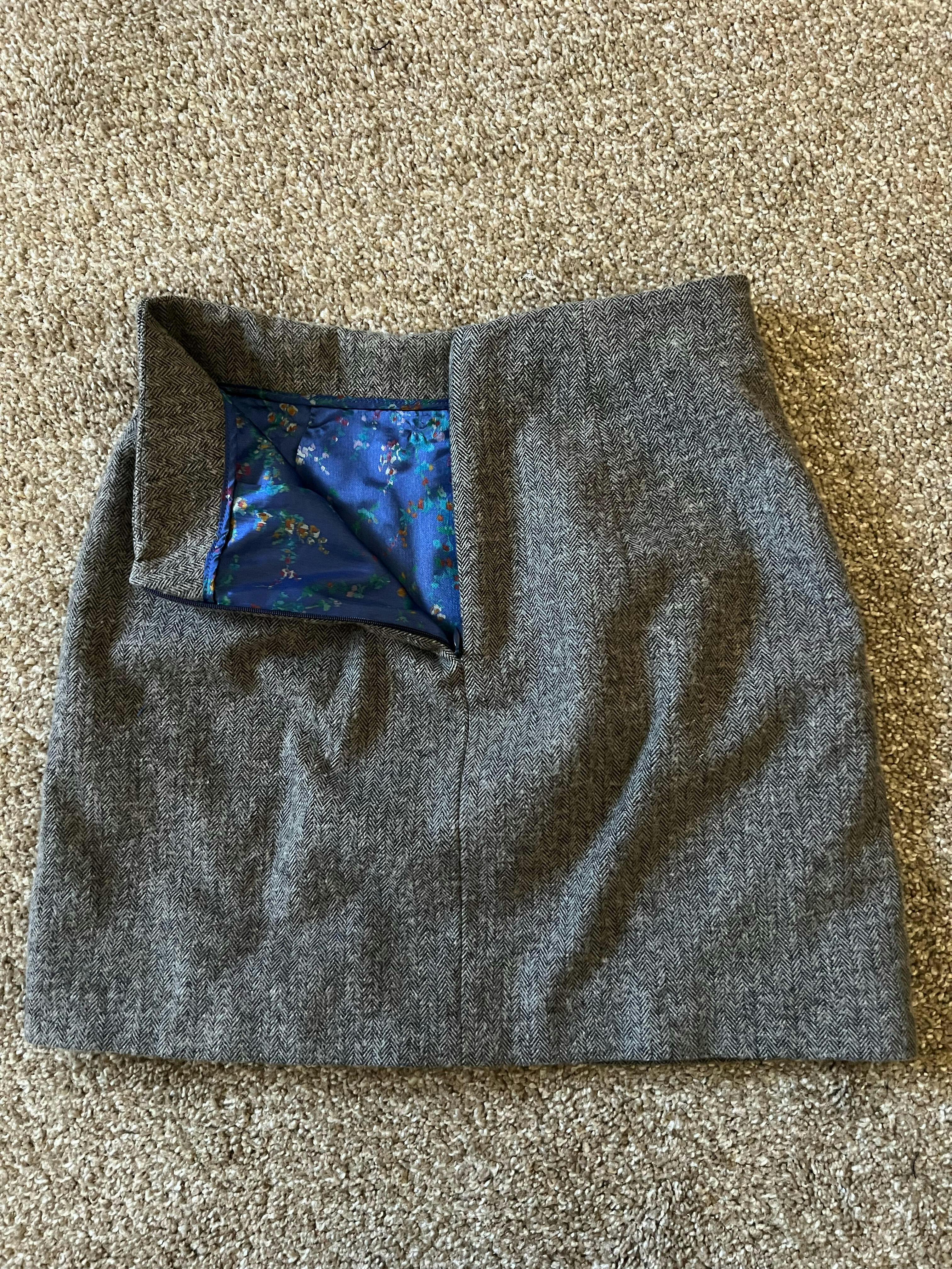 The skirt is fully lined with a bagged out lining and an internal separate waistband which is finished with a bias binding on the bottom edge for a luxurious finish.